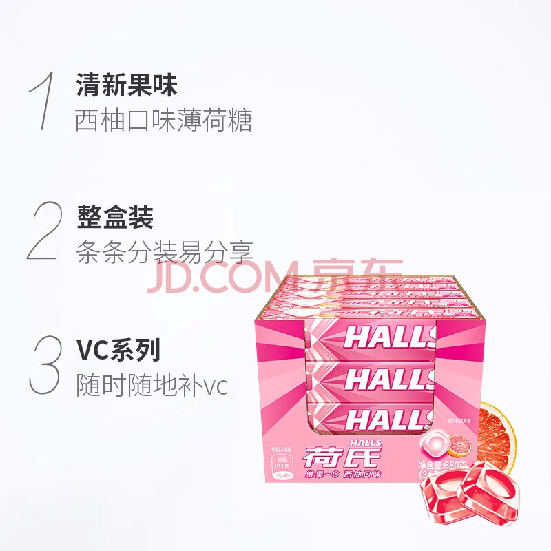 商品相册:荷氏 薄荷糖 水果西柚味 9粒34g*20条装 开车清爽 糖果零食 清新口气第