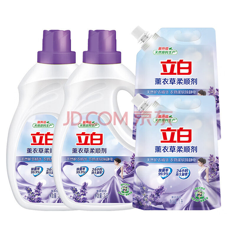 商品相册:立白衣物柔顺剂套装2L*2瓶+1L*2袋护衣护型防静电香味持久手洗机洗第