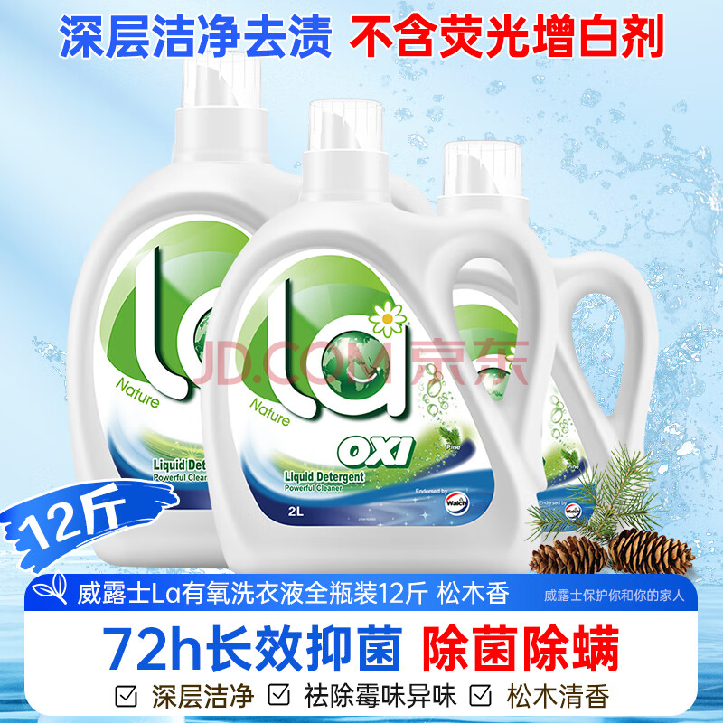 商品相册:威露士la有氧洗衣液松木香12斤全瓶组合装(3L+2L+1L) 除菌除螨除霉味第