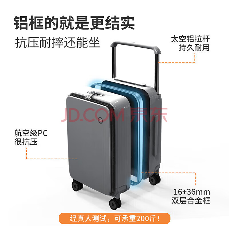 商品相册:米熙前开盖行李箱宽拉杆箱子铝框箱男20英寸商务登机箱女密码箱大容量第