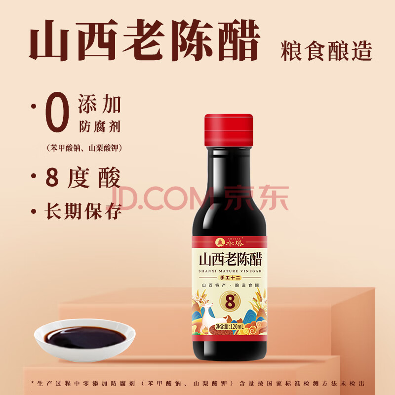 商品相册:水塔山西老陈醋8度120ml手工十二【19777标准】家用食醋便携凉拌调味第