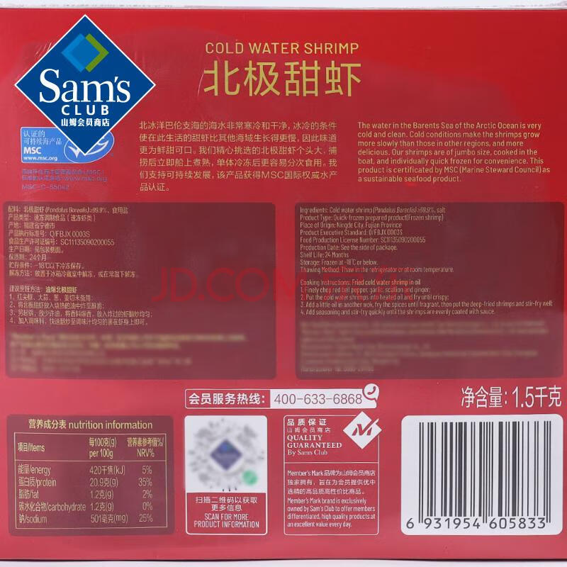 商品相册:北极甜虾 1.5kg 1.5kg(净重)第