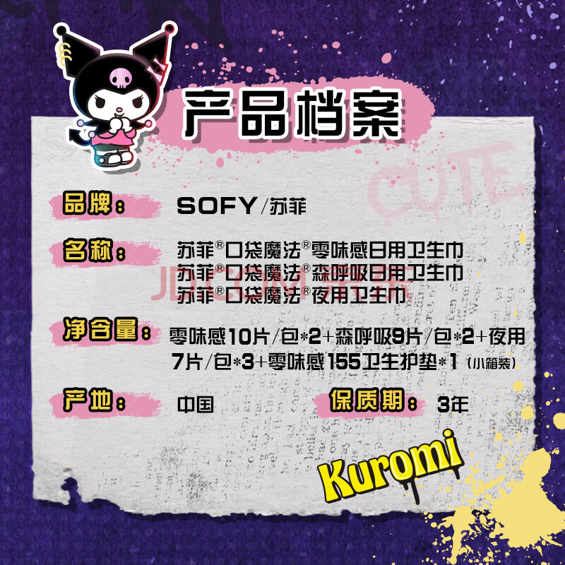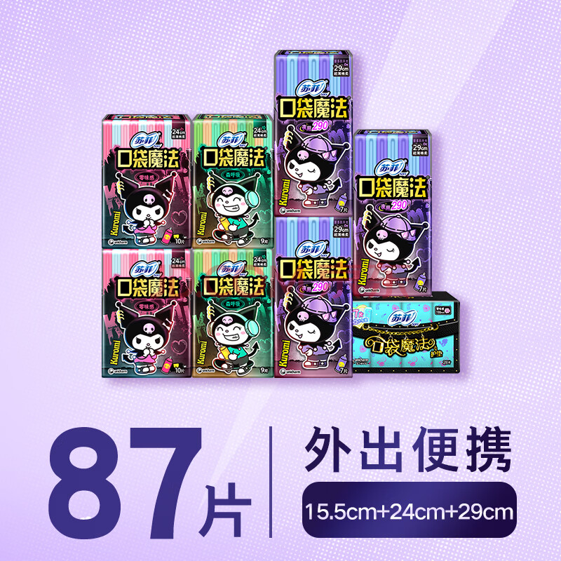 商品相册:苏菲口袋魔法卫生巾日夜组合87片超薄干爽便携装姨妈巾自营官方旗舰第