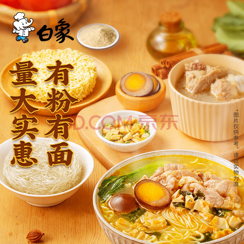 商品相册:白象 方便面 粉面菜蛋金汤肥牛味泡面粉丝卤蛋整箱150g*12桶第