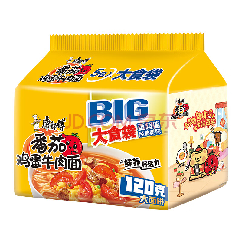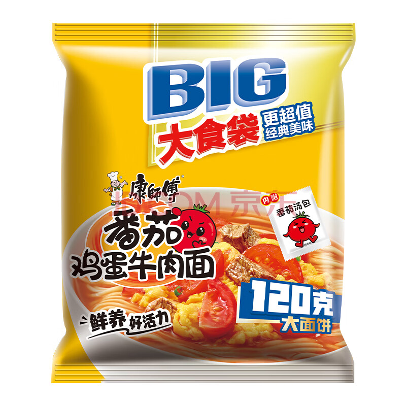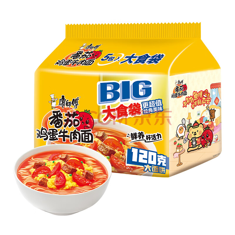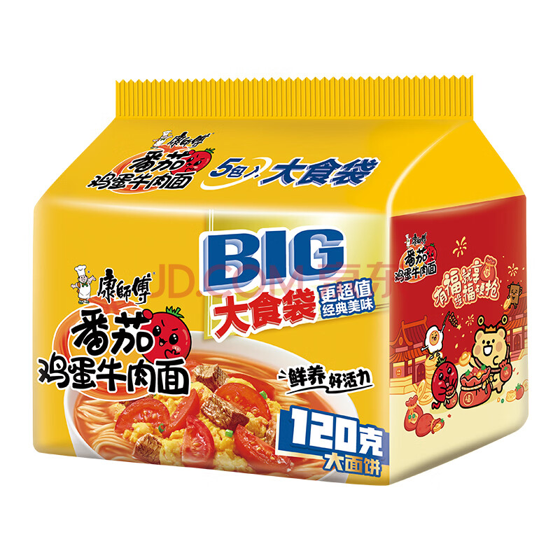 商品相册:康师傅 方便面 大食袋番茄鸡蛋牛肉面五连包162g*5 泡面袋装 第