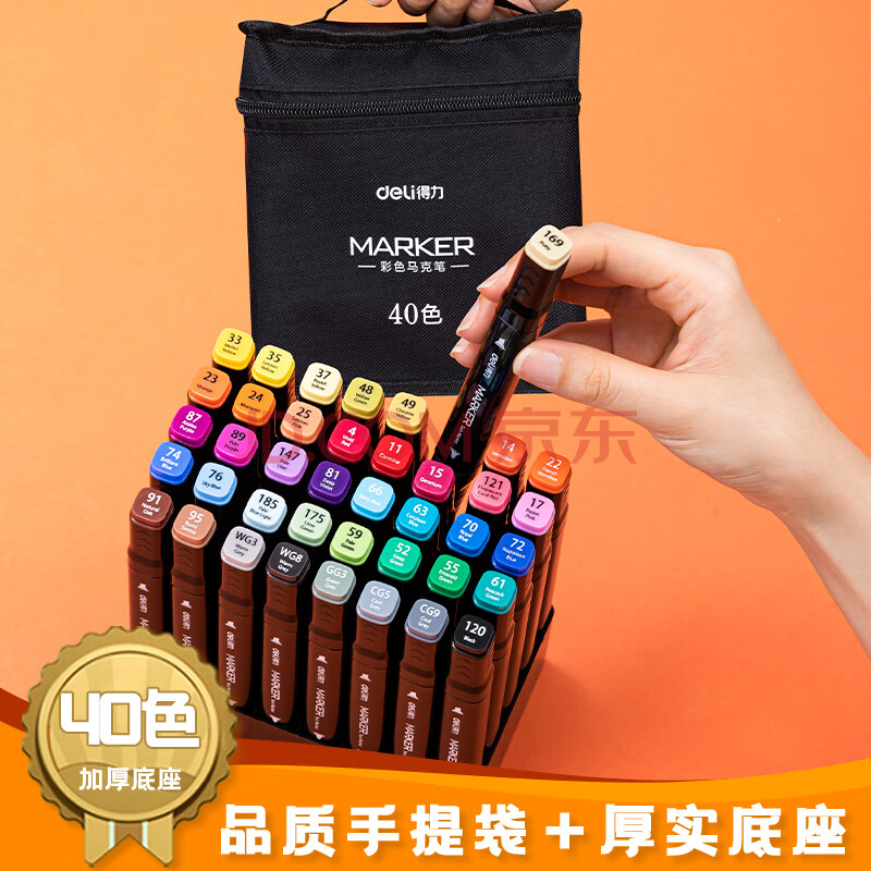 商品相册:得力(deli)40色粗细双头速干酒精马克笔黑布袋装学生水彩笔美术彩笔绘画手绘元旦树涂鸦生日礼物美育第