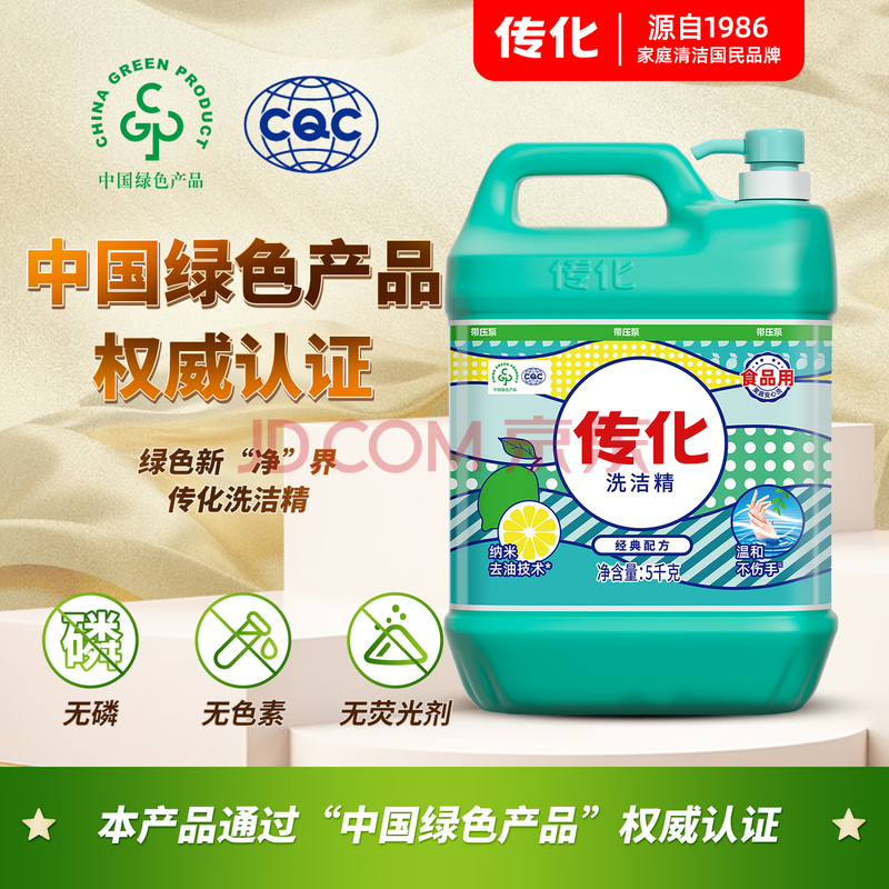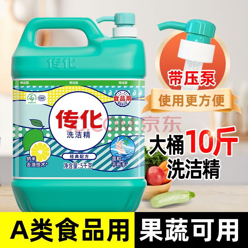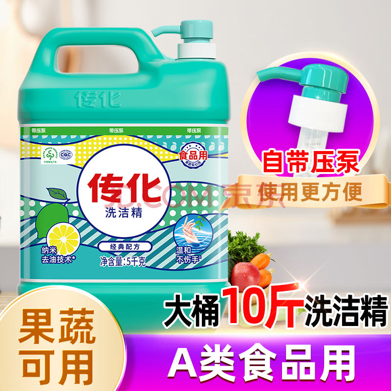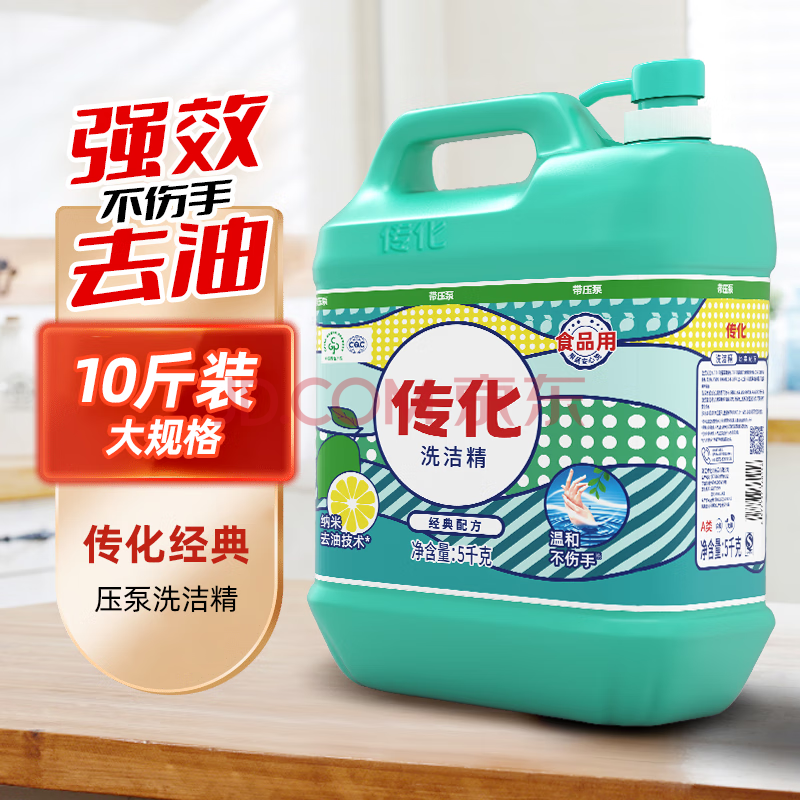 商品相册:传化洗洁精5kg大桶家用去油清香柠檬味食品餐具通用10斤装第