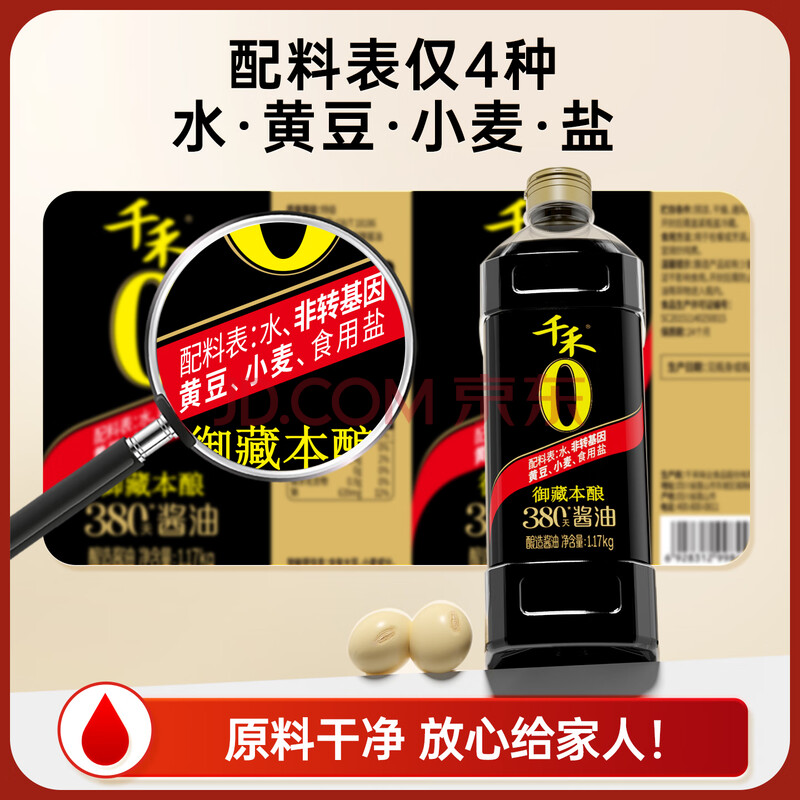 商品相册:千禾酱油御藏本酿380天1L*2(1.17kg*2)0添加特级生抽调料炒菜调味品第