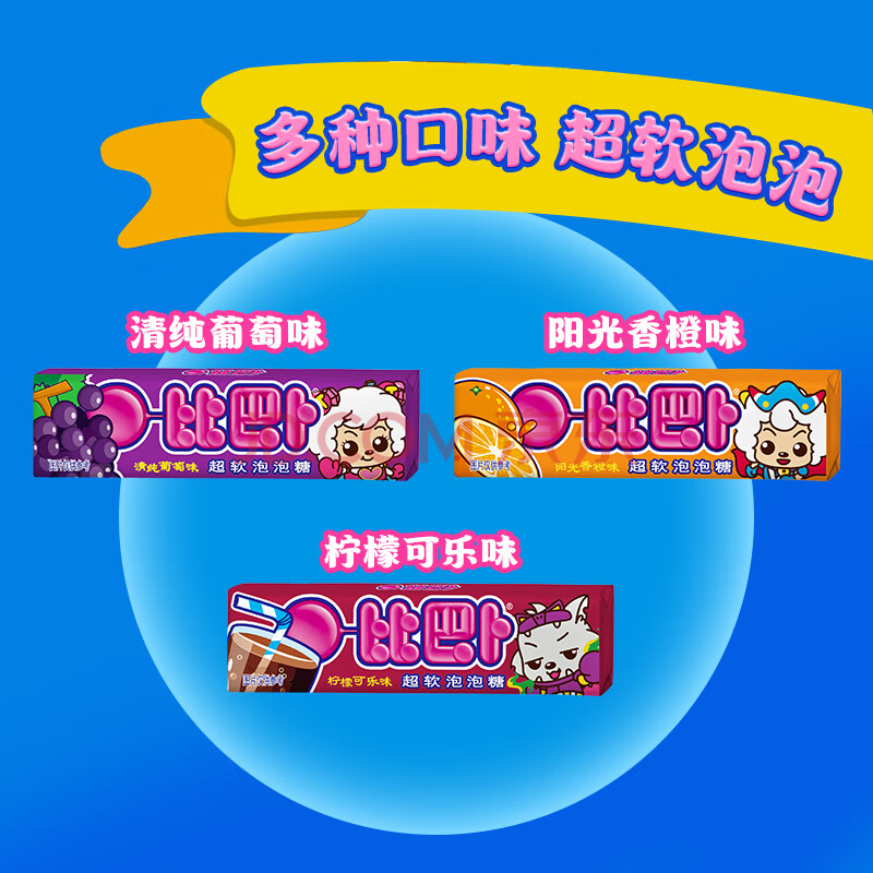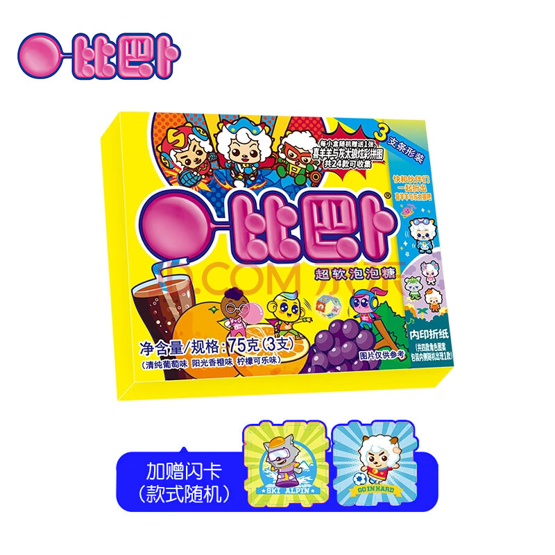 商品相册:比巴卜 喜洋洋混合水果泡泡糖75g(3支) 休闲儿童泡泡糖果旋风组合零食第