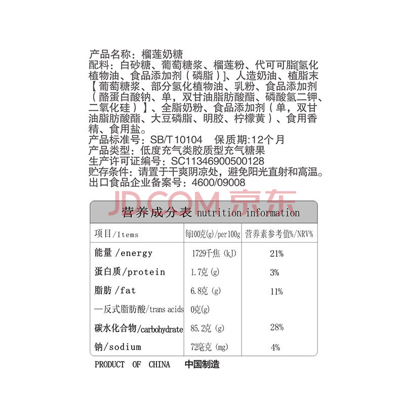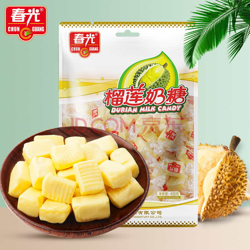 商品相册:春光食品 海南特产 榴莲奶糖 450g 水果软糖儿童糖果婚庆喜糖休闲零食第