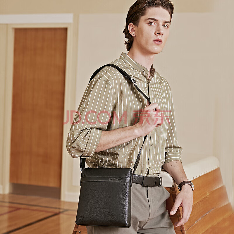 商品相册:稻草人男士单肩斜挎真头层牛皮通勤休闲挂包商务时尚出差轻便大容量第