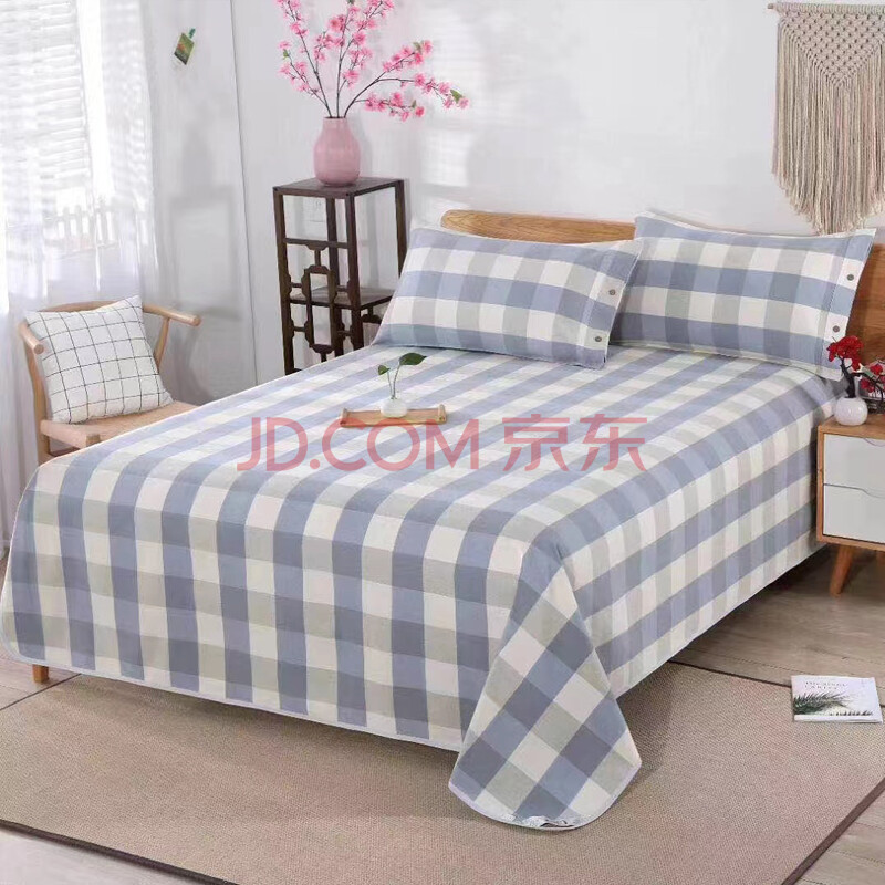 商品相册:鲁凤来 .老粗布凉席三件套 老粗布床单床品 可水洗双人床被单席子 2.0*2.3米凉席床单 大蓝灰格第