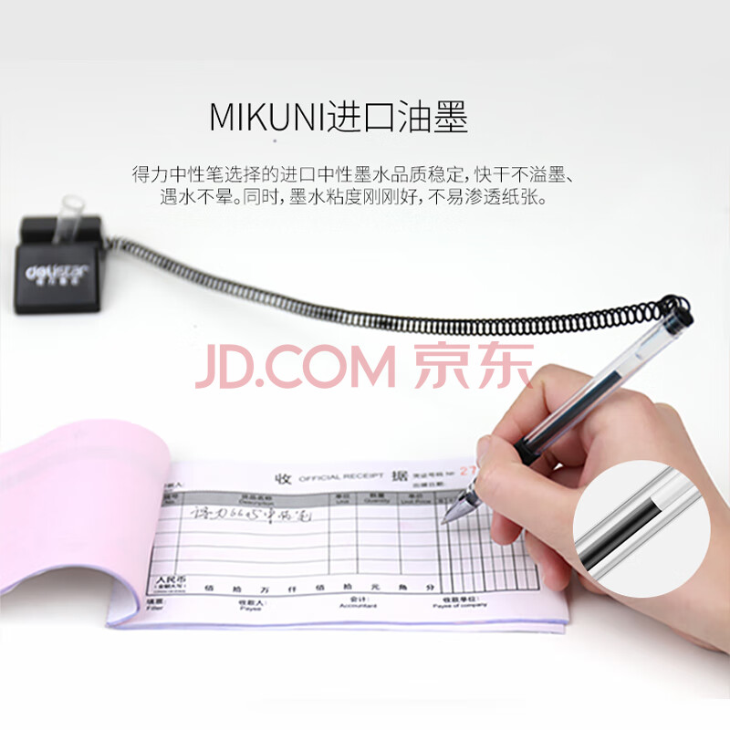 商品相册:得力(deli)台笔6791旋转台笔柜台桌面专用中性笔带线电话笔可粘贴桌子银行前台固定签字笔0.5mm24支装第