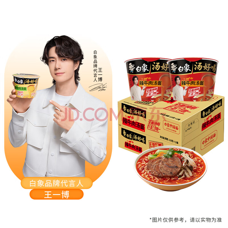 商品相册:白象 方便面 汤好喝辣牛肉汤面119g*12桶整箱装 浓汤泡面 速食第