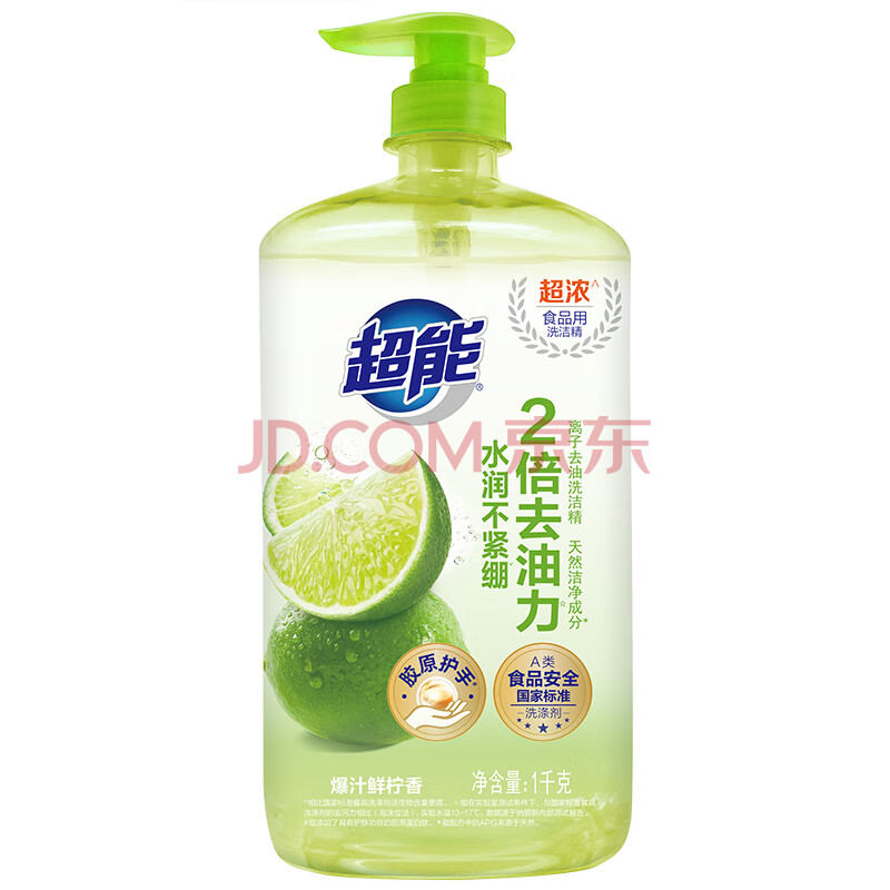 商品相册:超能离子去油洗洁精1kg 爆汁鲜柠 A类超浓配方 2倍去油力 胶原护手第