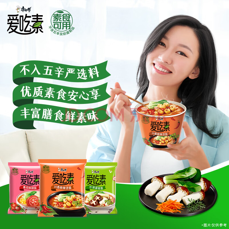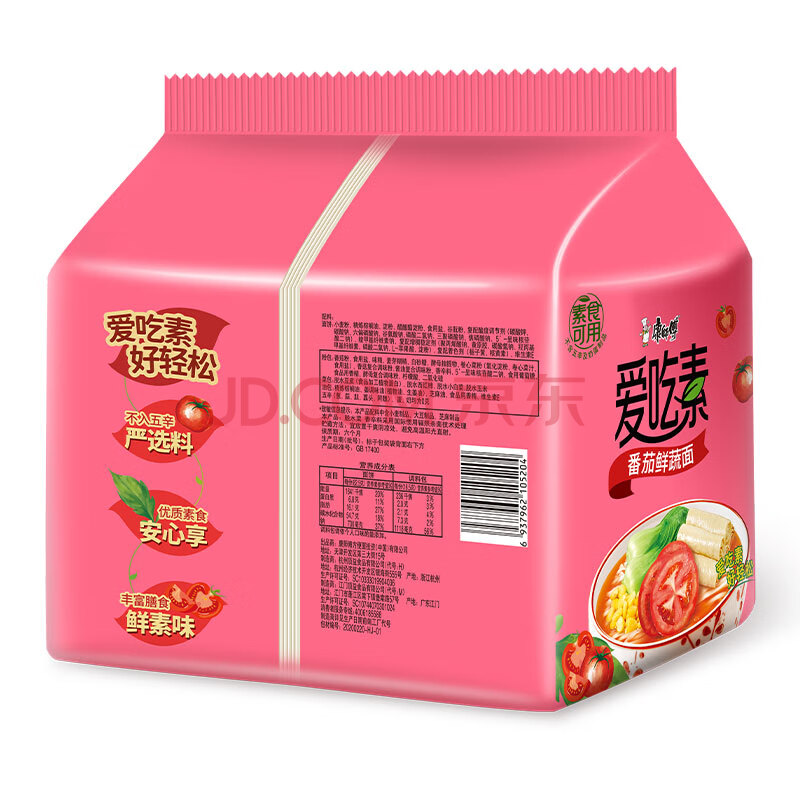 商品相册:康师傅方便面 爱吃素 番茄鲜蔬面99g*5袋 泡面袋装速食 不含五辛素食第