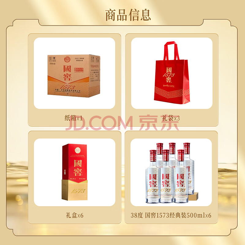 商品相册:泸州老窖 国窖1573 浓香型 白酒 38度 500ml*6瓶 整箱装 低度自饮 婚宴酒第