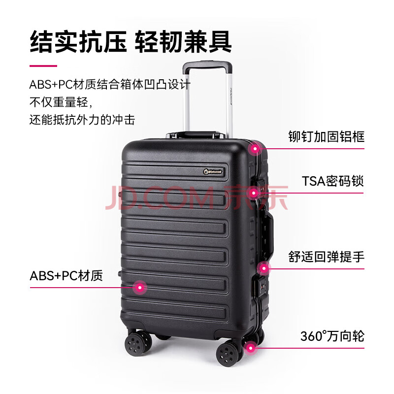 商品相册:Diplomat外交官时尚铝框拉杆箱万向轮行李箱旅行箱TC-9202 黑色 20英寸第