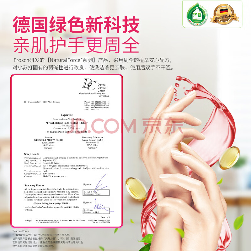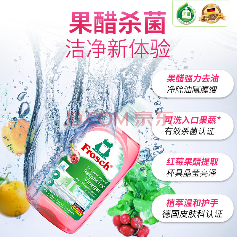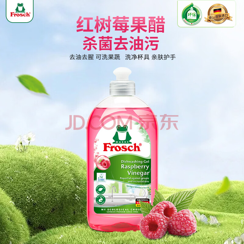商品相册:Frosch红莓果醋餐具洗洁精500ml 天然红莓成分 高效清洁 德国原装进口第