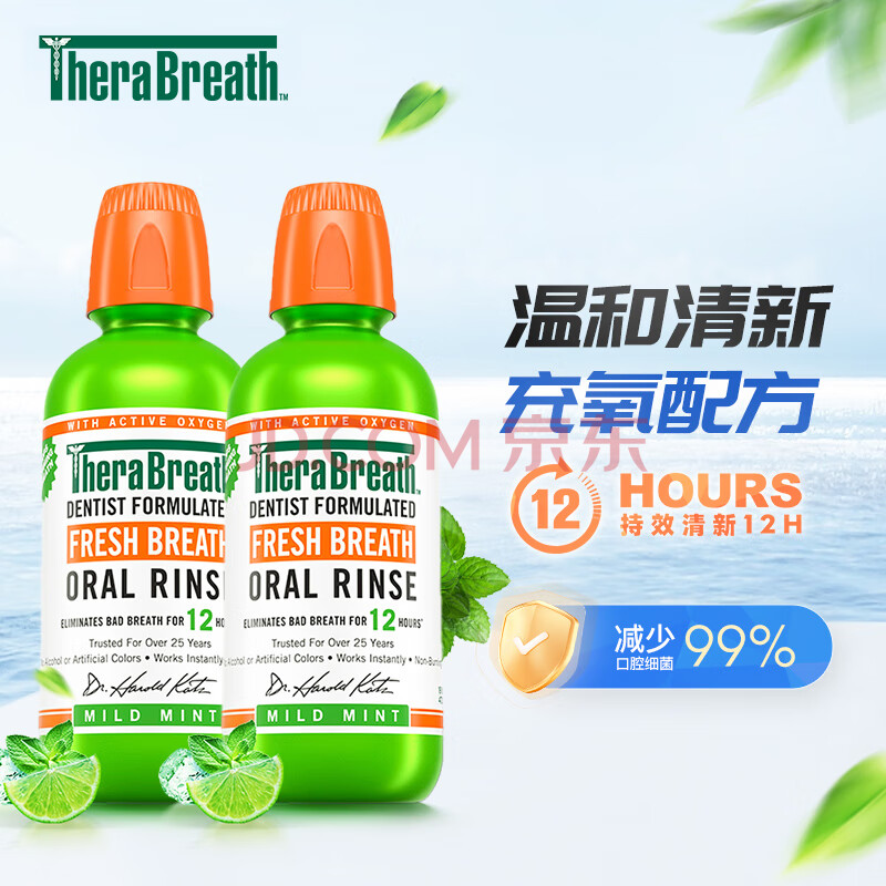 商品相册:TheraBreath凯斯博士漱口水温和长效清新口气473ml*2瓶 0酒精抑菌充氧配方第