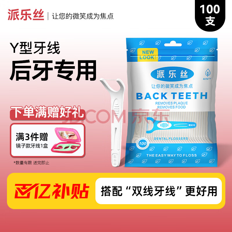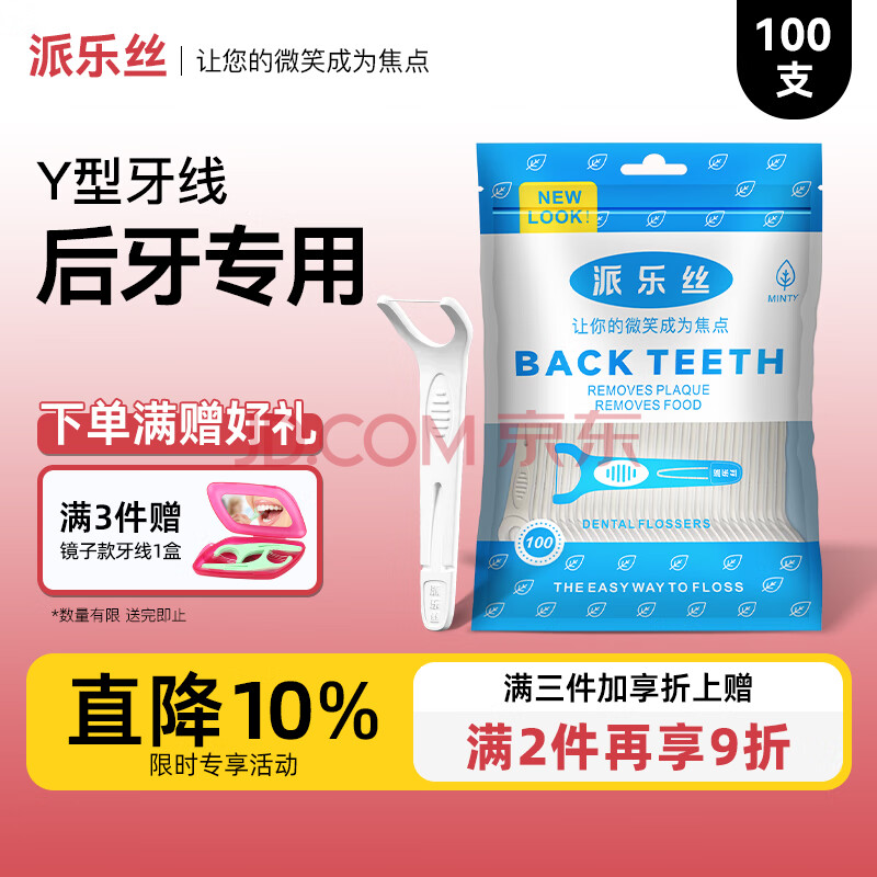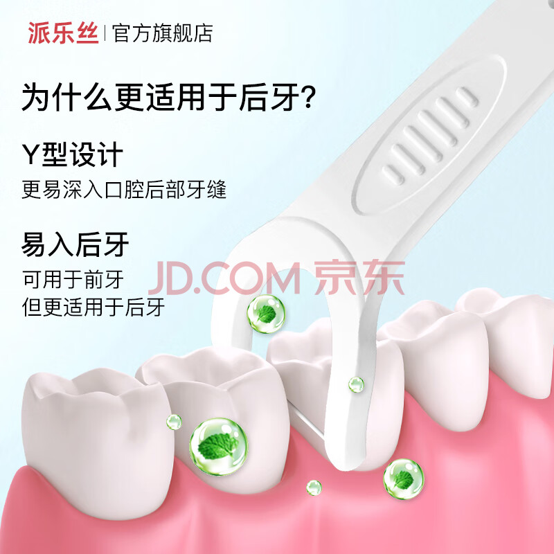 商品相册:plackers后牙Y型大牙牙线棒超细牙缝成人便携家庭装剔牙牙签100支第