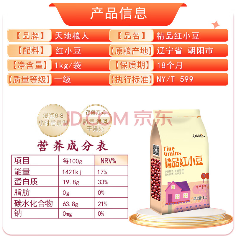 商品相册:天地粮人甄制天地粮人红小豆2斤高蛋白膳食纤维 低脂肪 红豆汤 红豆粥 杂粮第