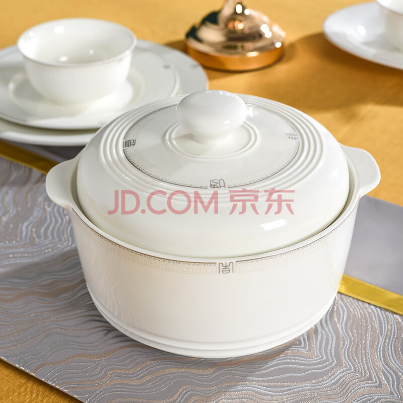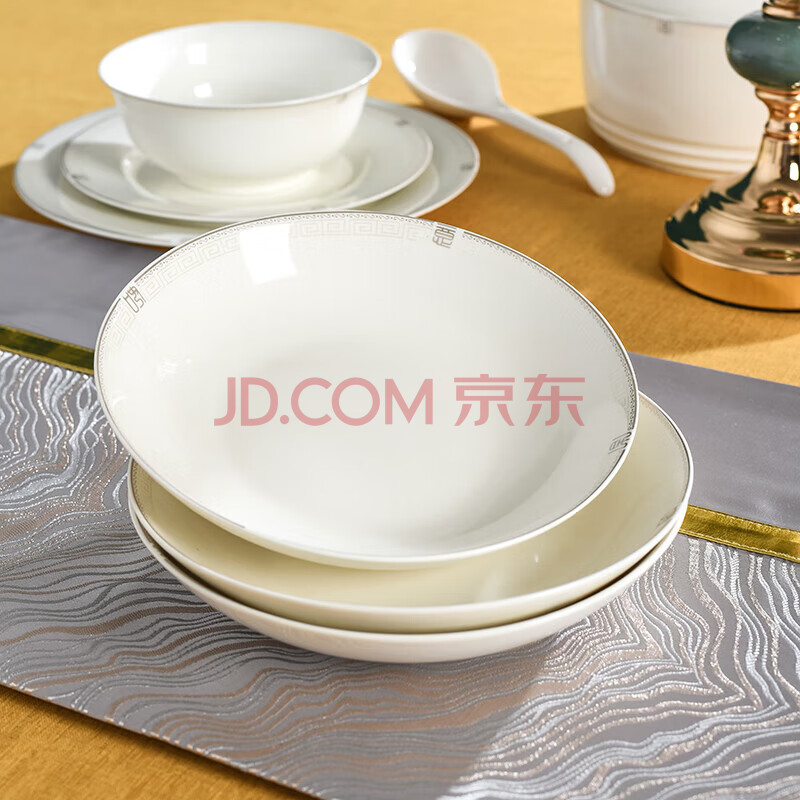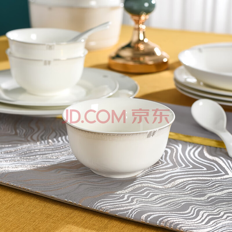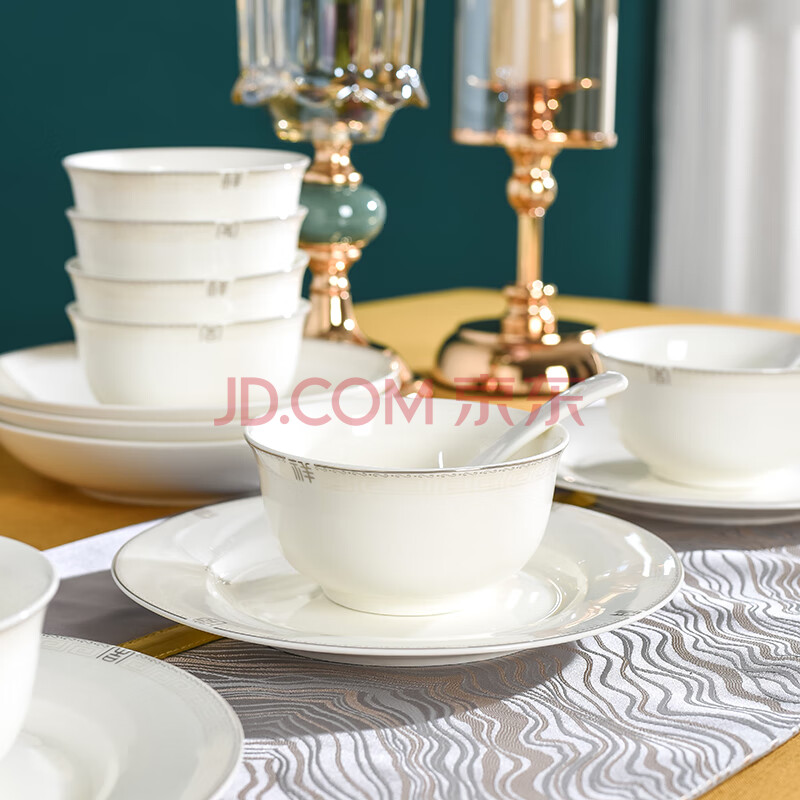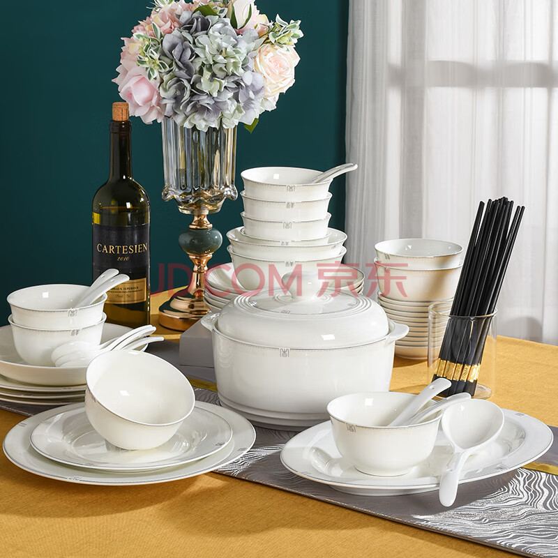商品相册:裕行陶瓷餐具碗碟套装简约高级碗盘碟整套乔迁送礼吉祥如意56头彩盒装第