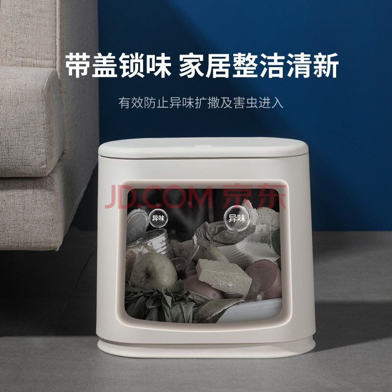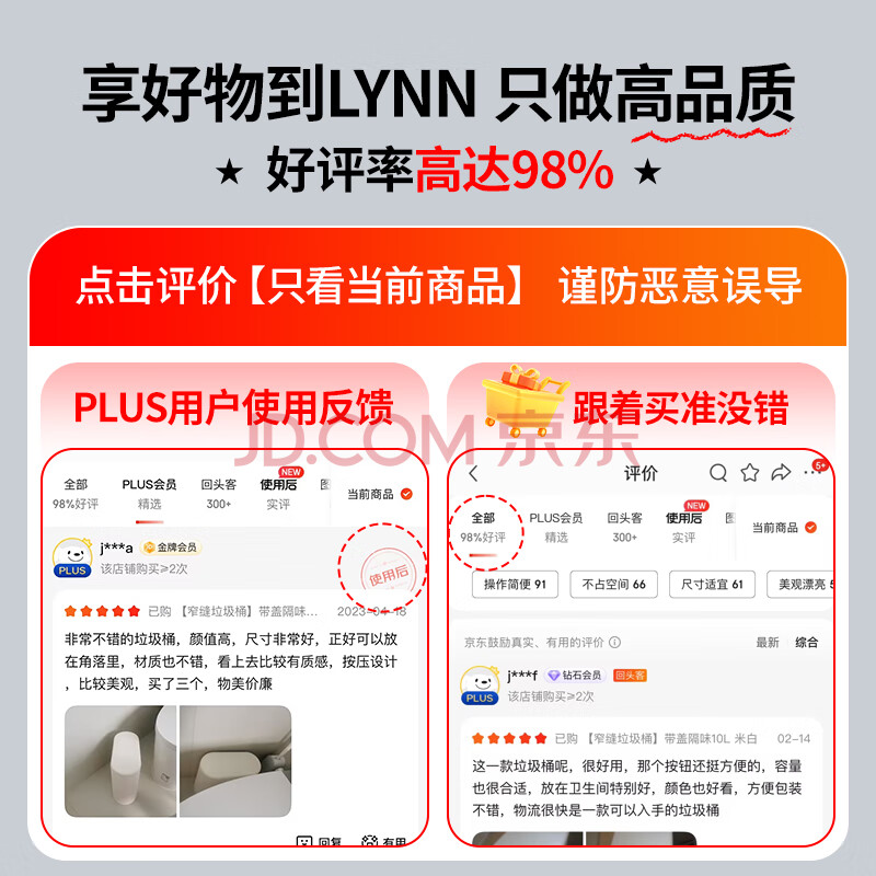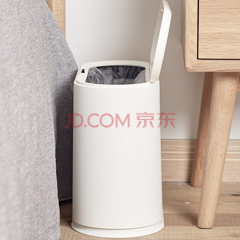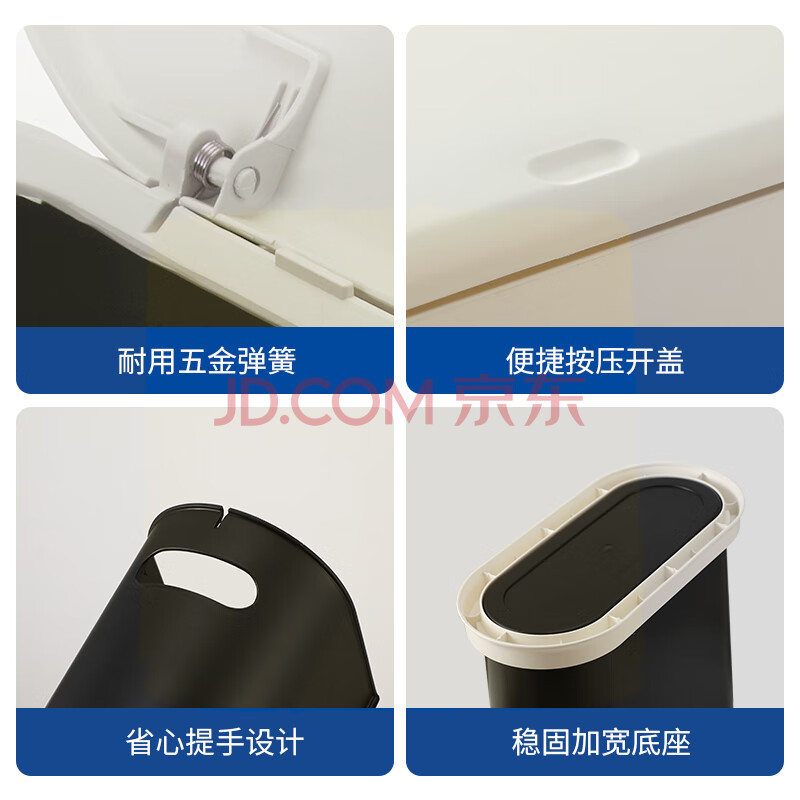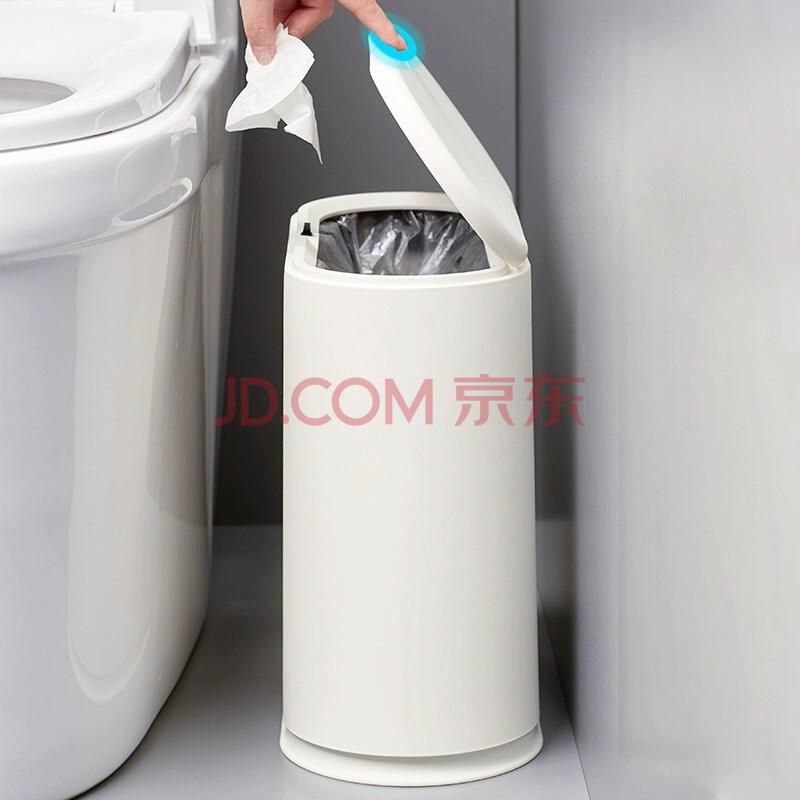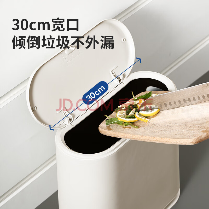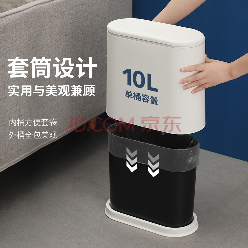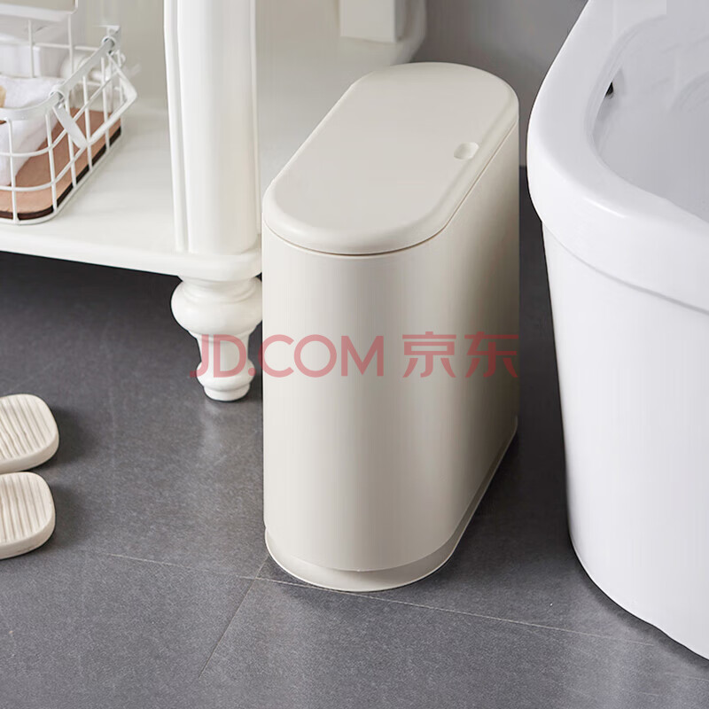 商品相册:LYNN窄缝垃圾桶10L 卫生间带盖按压开盖大号米白 厨房浴室专用大容量第