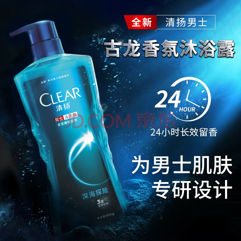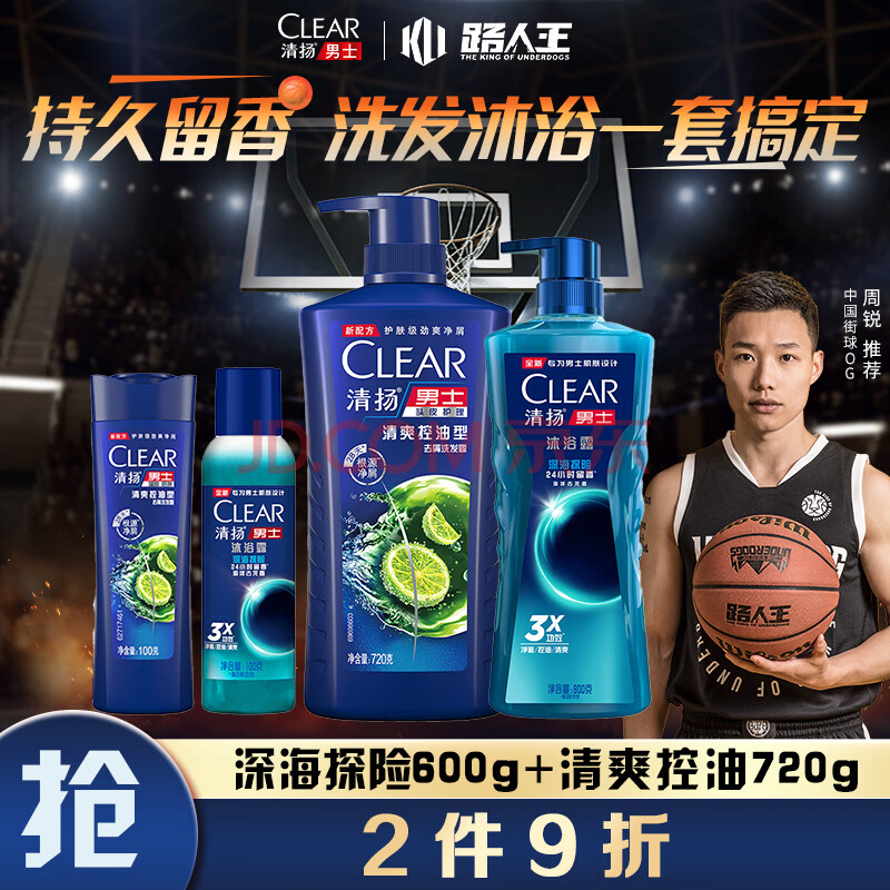 商品相册:清扬(CLEAR)男士洗发沐浴组套深海沐浴露600g+控油型洗发水720g+随机100g*2第