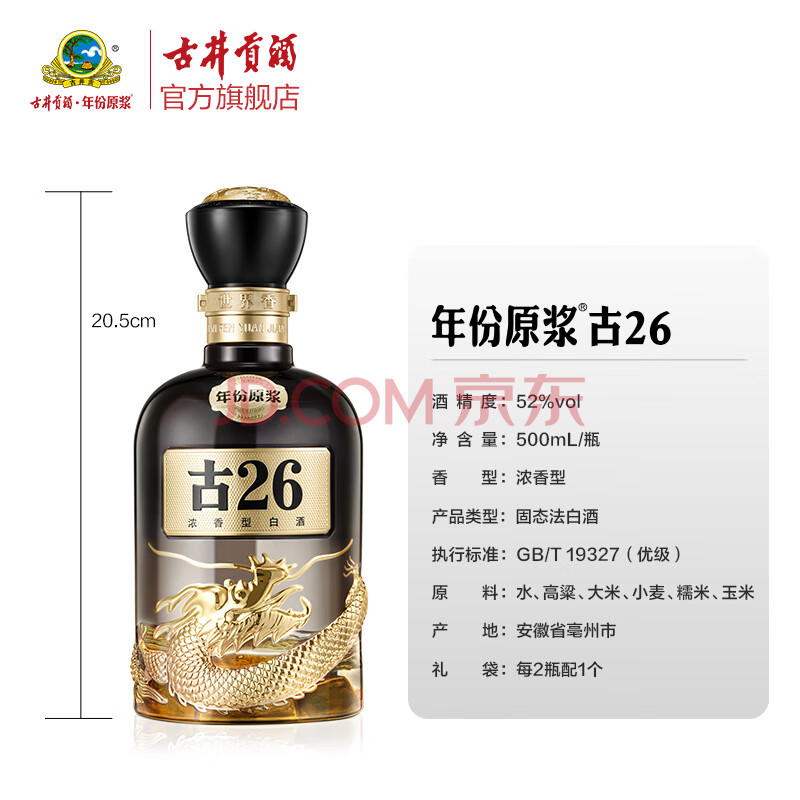 商品相册:古井贡酒 年份原浆古26 浓香型白酒 52度 500mL*1瓶 单瓶装第