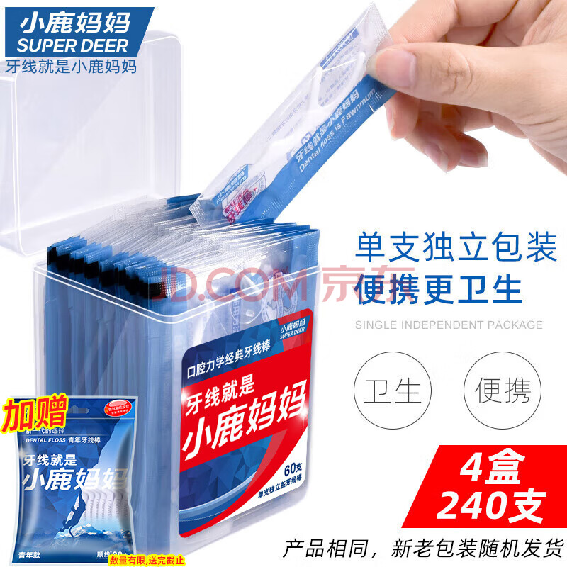 商品相册:小鹿妈妈 牙线棒单支便携独立包装超细牙线棒牙线盒家庭装餐厅牙签 240支第