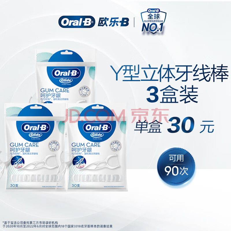 商品相册:欧乐B后牙清洁Y型牙线棒便携牙线棒牙签细滑线30支*3新老包装混发第1张/共9