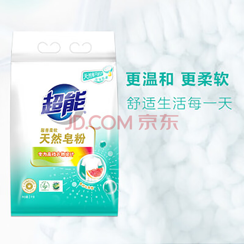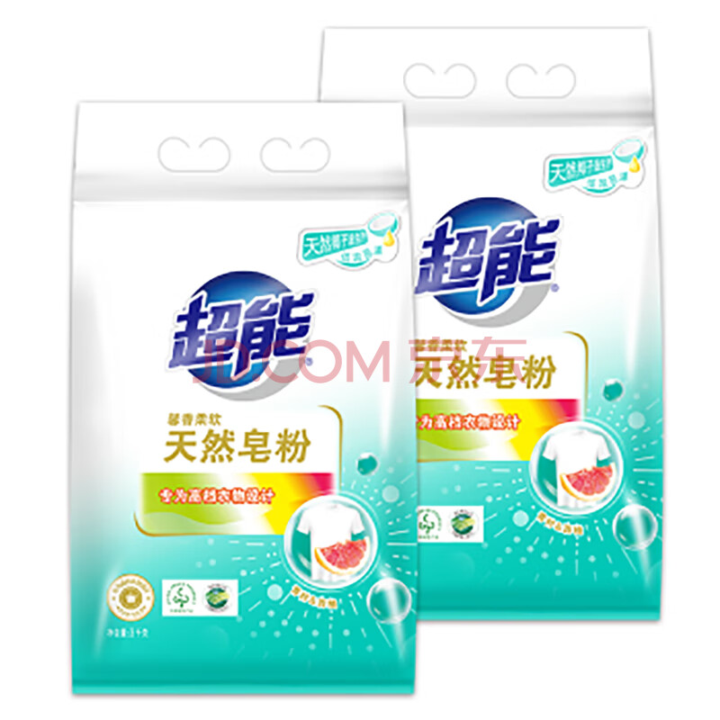 商品相册:超能 天然皂粉(馨香柔软)3kg*2 天然椰子油生产 温和不刺激 低泡易漂洗 硬水通用 洗衣粉第