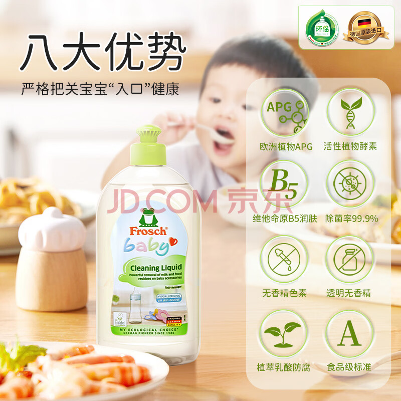 商品相册:Frosch婴童餐具洗洁精 500ml 温和配方 温和去污 德国原装进口第