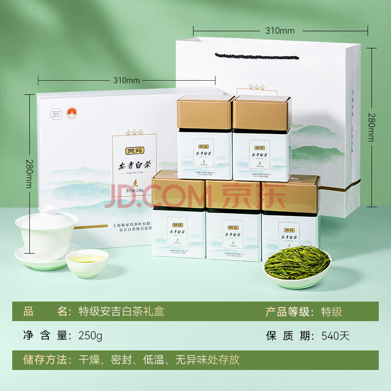 商品相册:贡苑头采芽安吉白茶明前特级250g 2025新茶高档绿茶茶叶礼盒送人礼品第