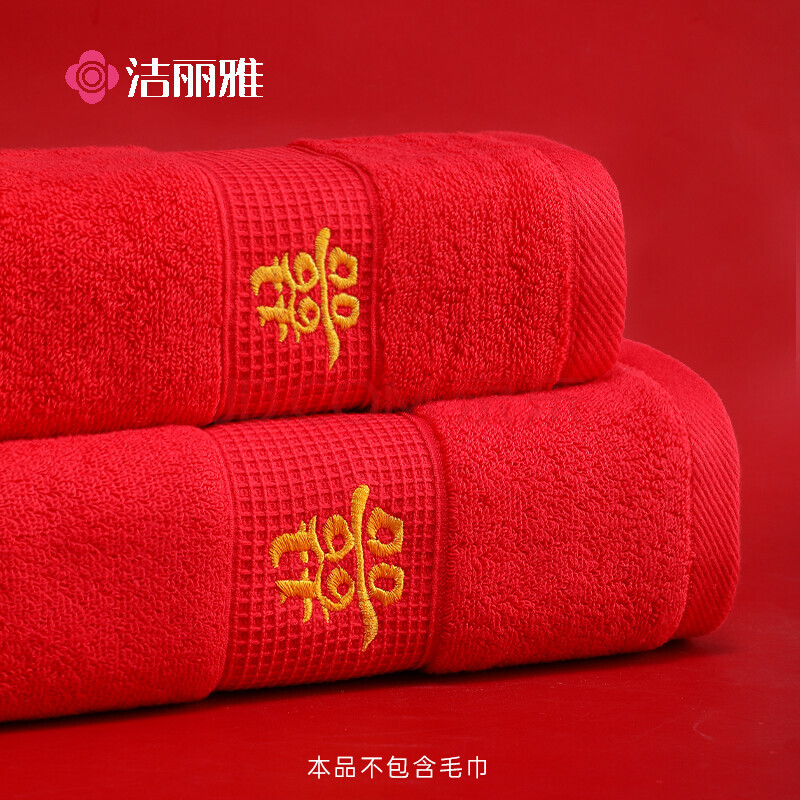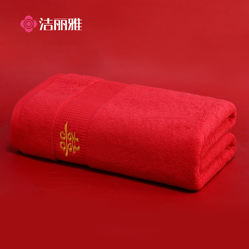商品相册:洁丽雅浴巾 大红喜字全棉结婚庆加厚新疆长绒棉 成人男女吸浴巾1条第