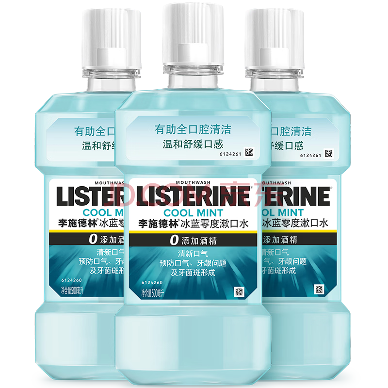商品相册:李施德林精油漱口水冰蓝零度清新口气减少口腔细菌500mL*3去口臭深层清洁第