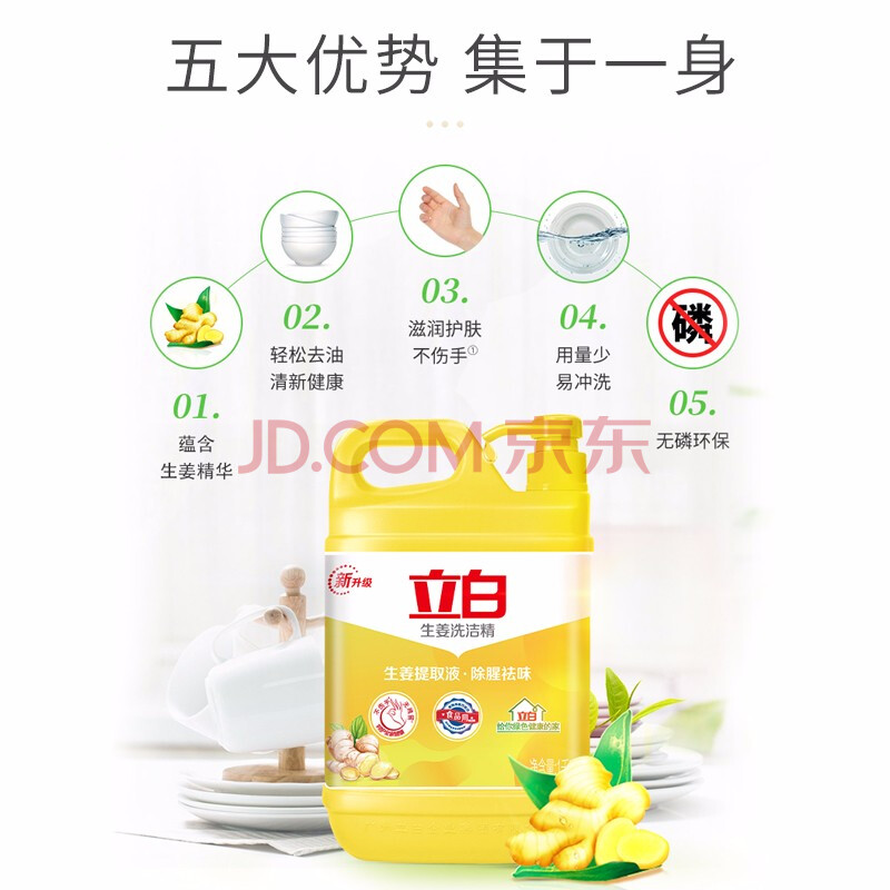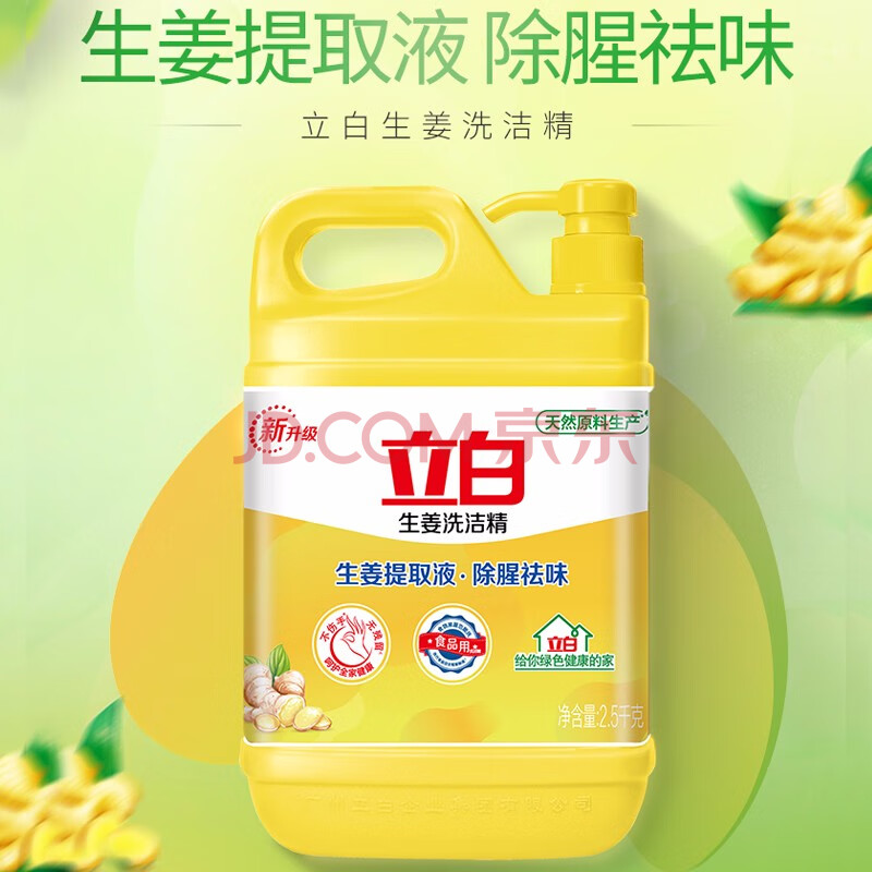 商品相册:立白生姜大桶洗洁精2.5kg去腥去油洗A类食品用碗液洗洁灵洗涤灵洗涤剂第