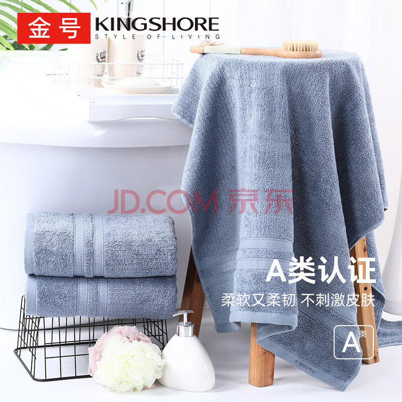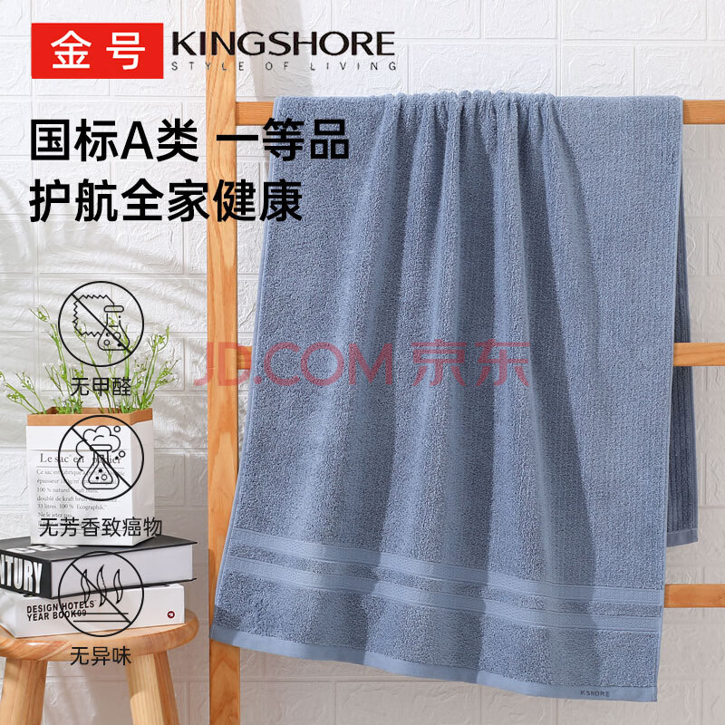 商品相册:金号浴巾 3A抗菌纯棉浴巾成人加厚吸水男女家用大裹巾140*70cm 兰色第