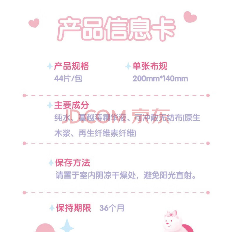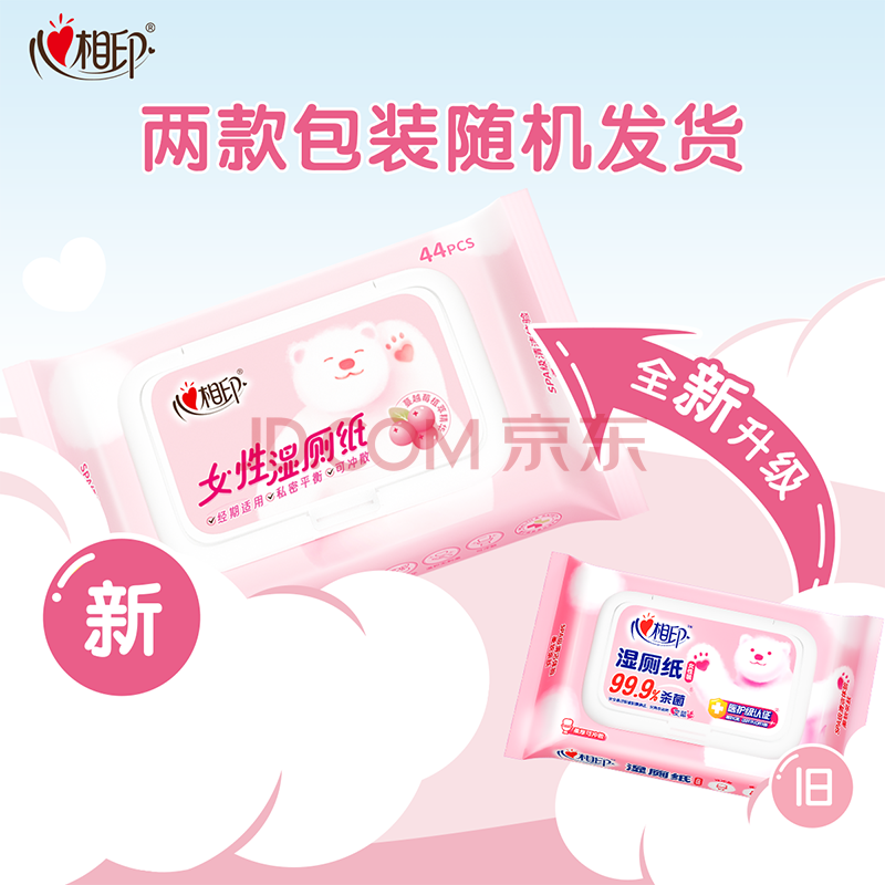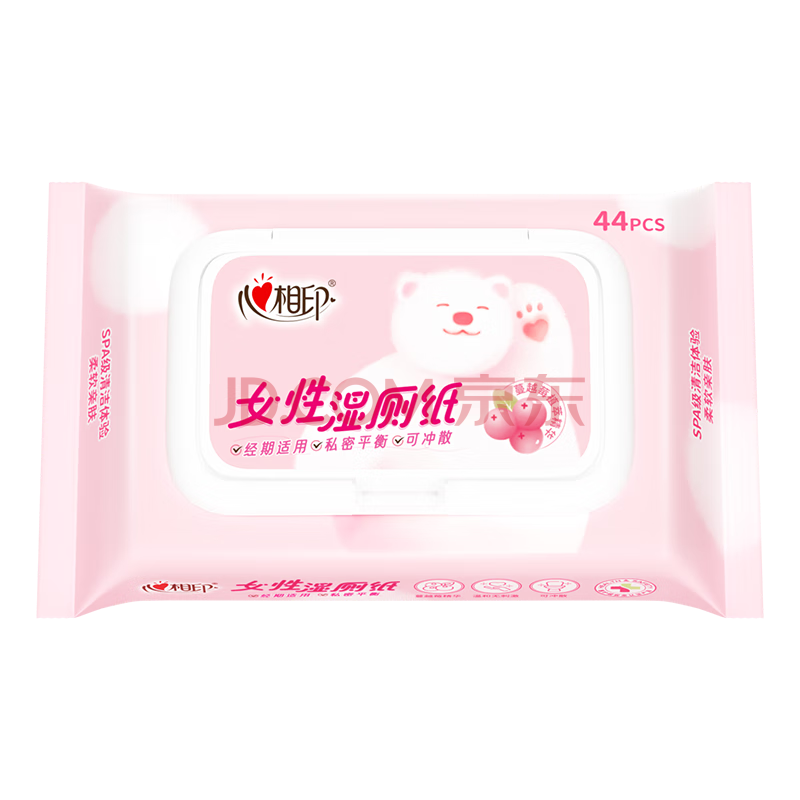 商品相册:心相印女性云熊湿厕纸44片*1包蔓越莓精华 经期温和私处护理湿纸巾 第