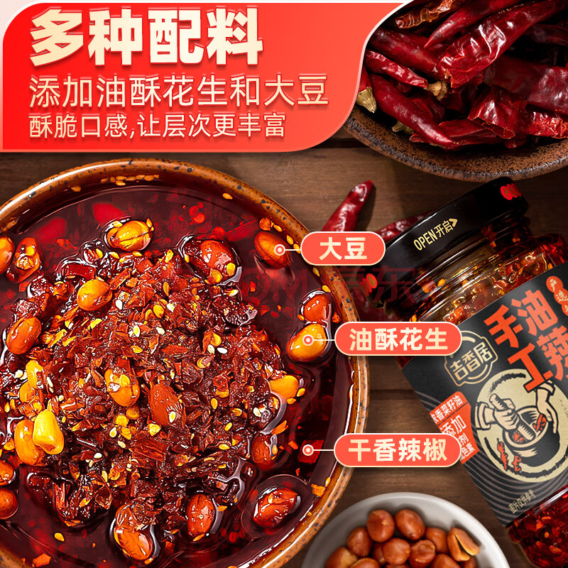 商品相册:吉香居手工油泼辣子 辣椒酱凉拌菜拌面辣椒红油调味330g第