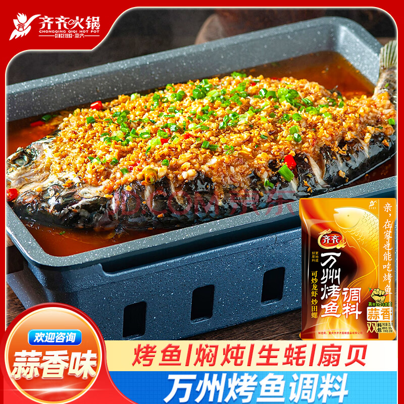商品相册:齐;齐齐餐饮重庆万州烤鱼调料烤鱼秘制料纸包鱼用料200g 蒜香第