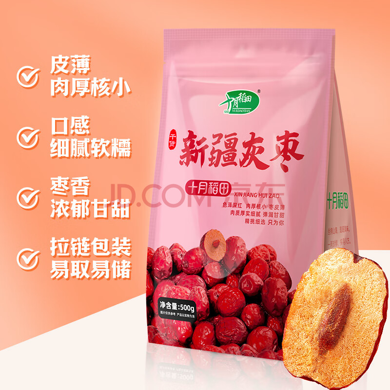商品相册:十月稻田 新疆灰枣 500g 若羌红枣 小枣 休闲零食 泡水煮粥补气血 八宝粥第