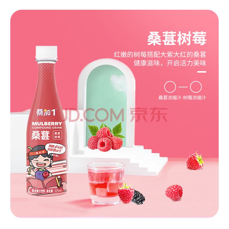 商品相册:宝桑园 桑葚果汁饮料 树莓味325ml*15瓶/箱第