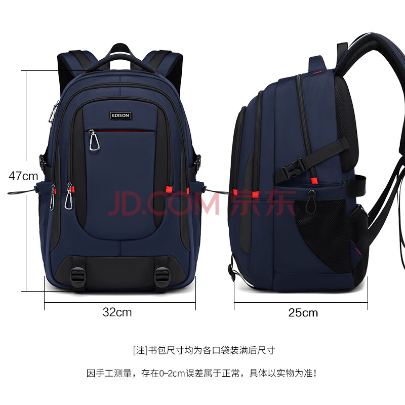 商品相册:Edison爱迪生中学生书包护脊减负大容量防泼水初中高中旅行背包K052-1第