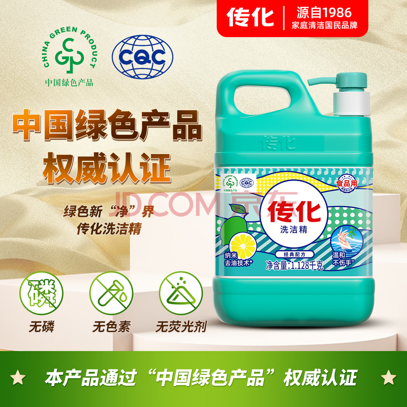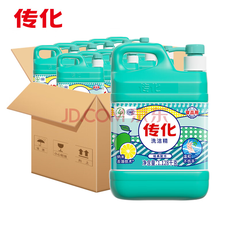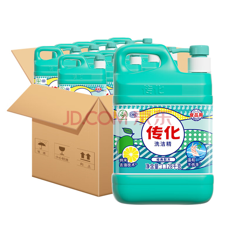 商品相册:传化洗洁精1.128kg*10瓶(整箱)国货柠檬食品用果蔬高效去油污不伤手第