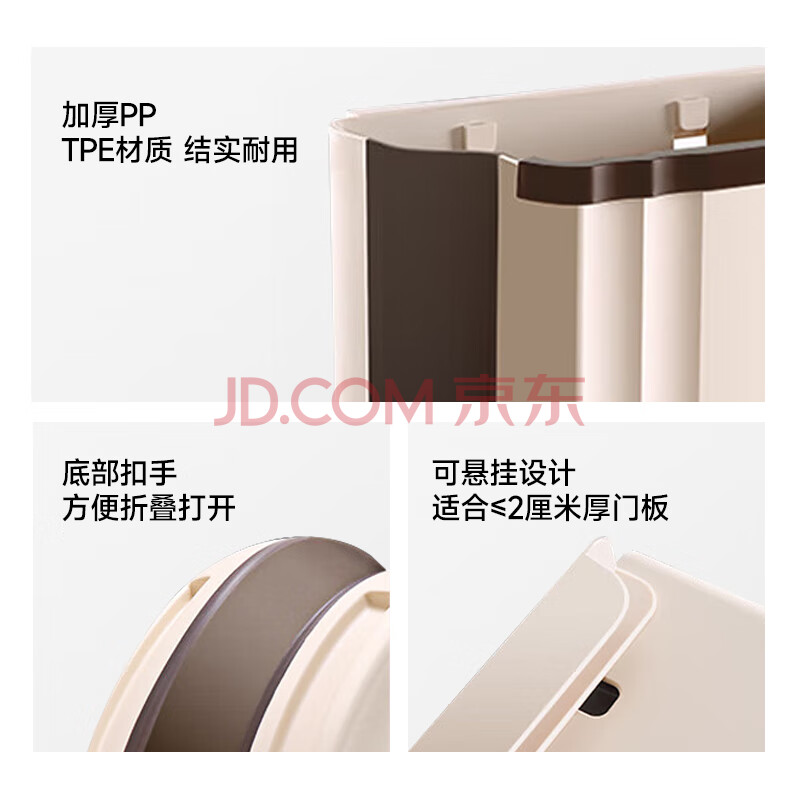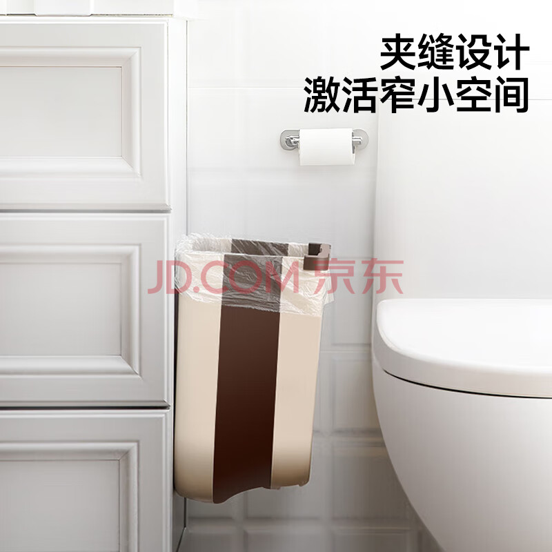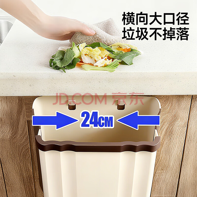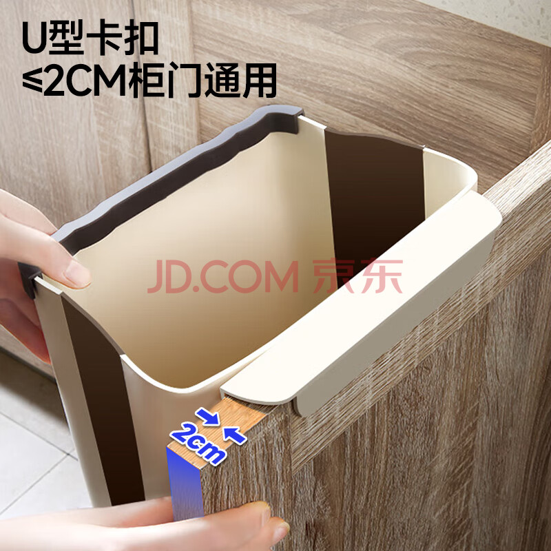 商品相册:五月花厨房壁挂垃圾桶9L家用橱柜门壁挂式卫生间客厅悬挂收纳折叠款第