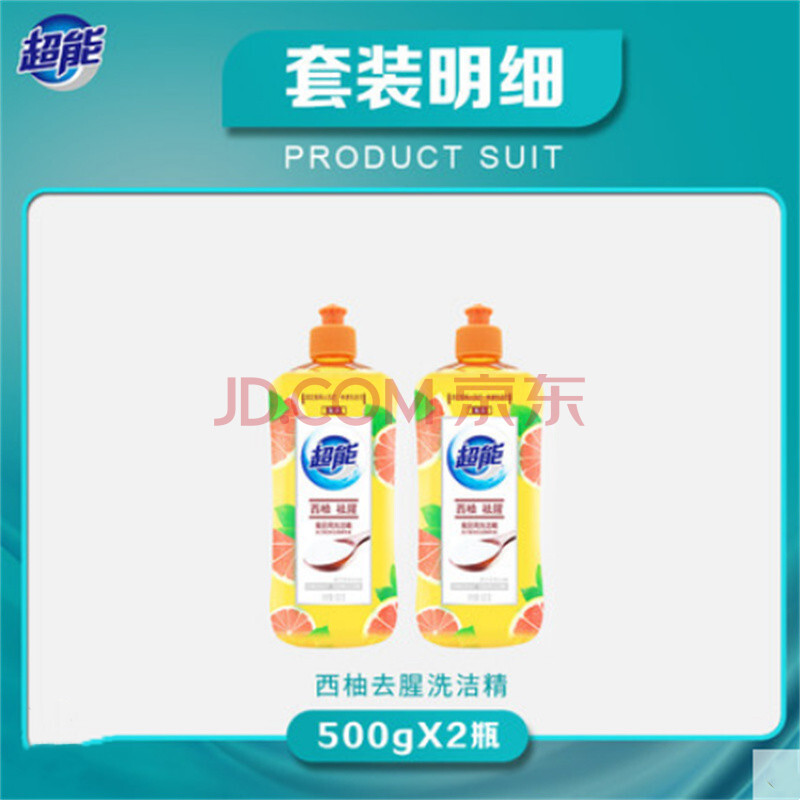 商品相册:超能 离子洗洁精 西柚祛腥 餐具果蔬厨房清洁 500g*2瓶/件第