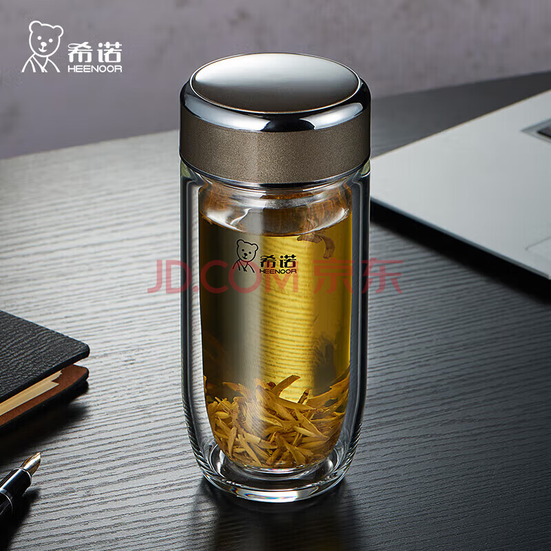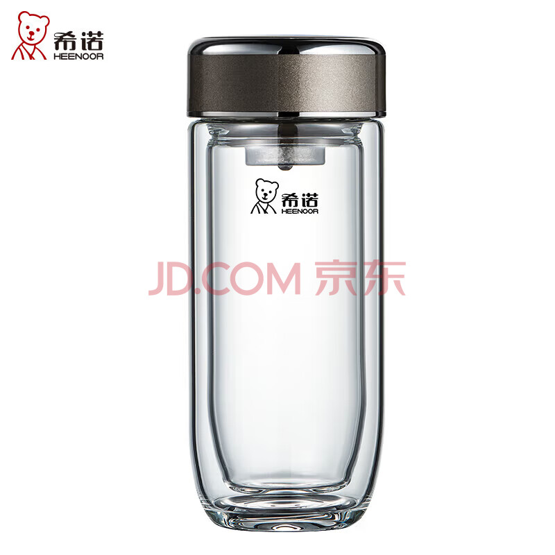 商品相册:希诺(HEENOOR)玻璃杯双层隔热男士高档车载水杯透明便携杯子带滤网泡茶杯XN-1925中闪银灰 335ML第