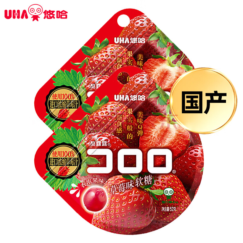 商品相册:悠哈 酷露露果汁软糖 52g*2包 草莓味 休闲糖果零食 网红零食 国产第